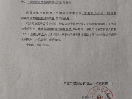 鶴壁市金星石英玻璃儀器有限公司,專(zhuān)營(yíng) 硫酸稀釋裝置 電子級超凈高純設備 混酸濃縮分離設備 通用試劑石英提純設備 等業(yè)務(wù),有意向的客戶(hù)請咨詢(xún)我們,聯(lián)系電話(huà):13903922307